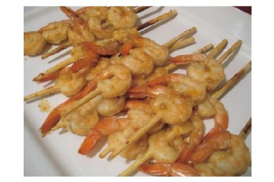 Drizzle cooked shrimp skewers with reserved marinade and serve.