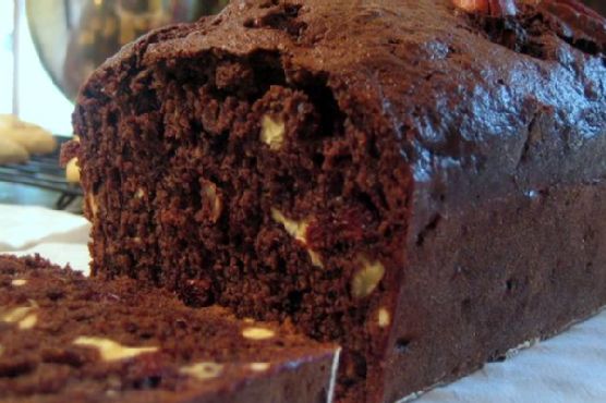 Pour chocolate batter into a greased and floured pan. 9x5x3 inches.