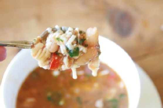 Garnish each bowl with shredded cheese and a few whole parsley leaves.